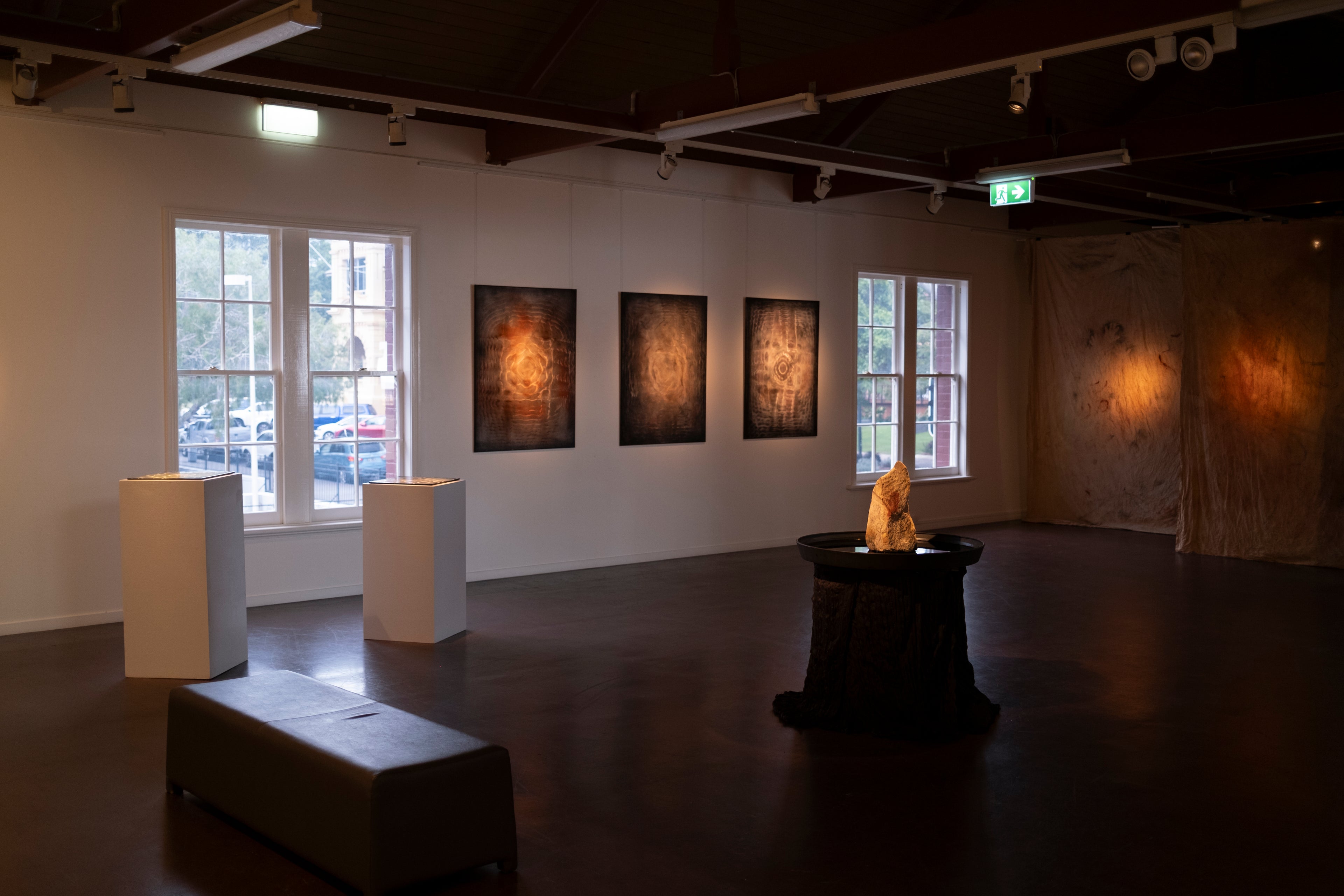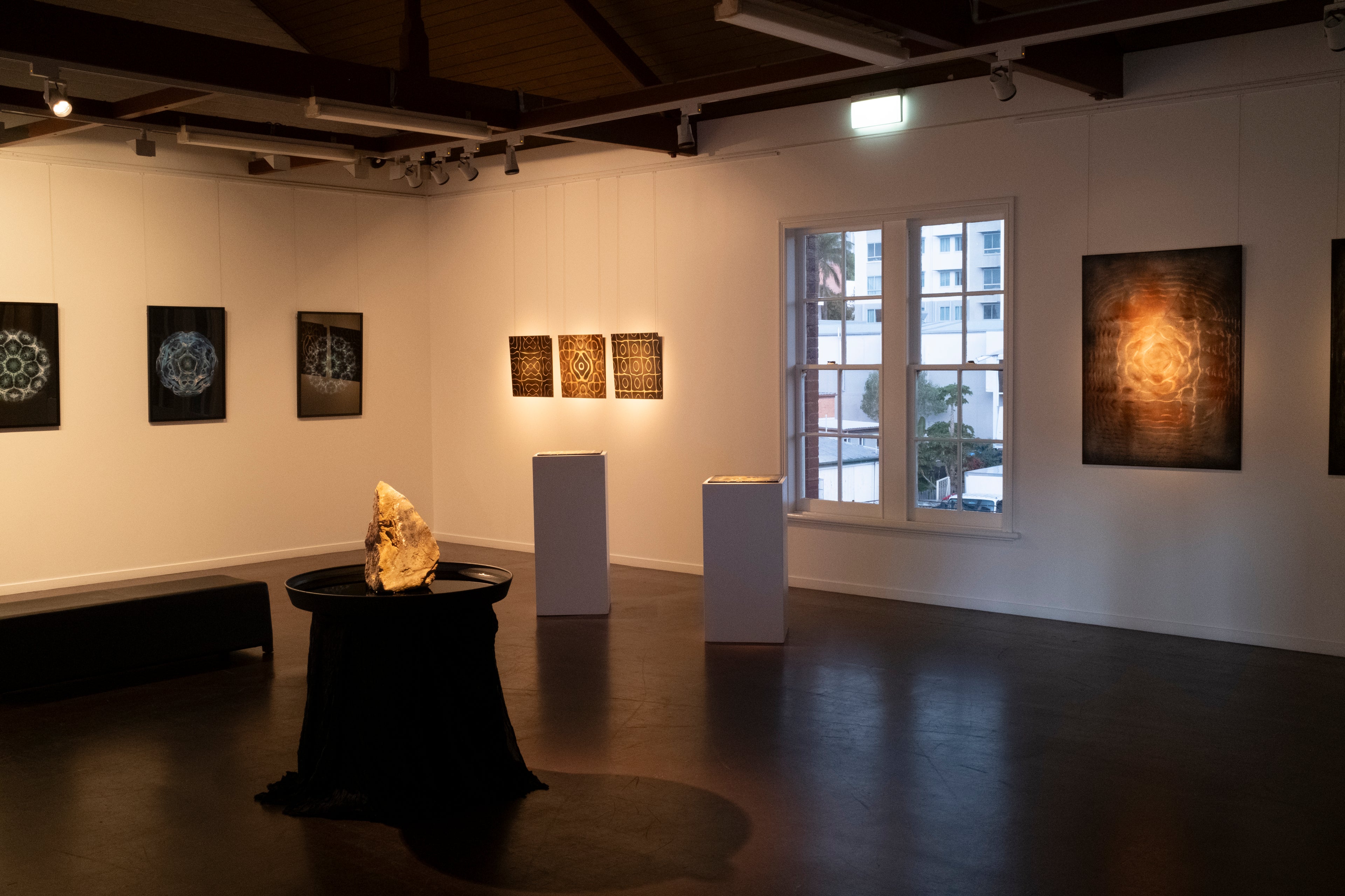 Patterns created naturally by acoustic sound vibrations of sand and solidified with earth pigments.